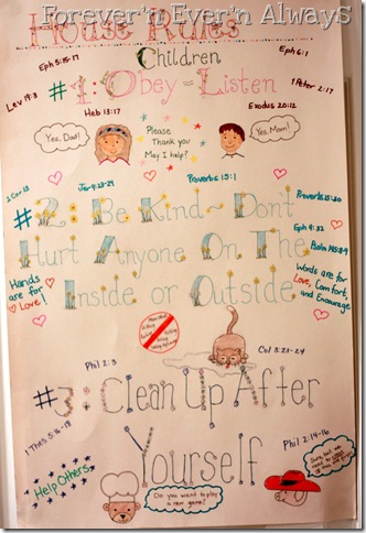 Five years ago I saw a similar poster hanging in a friends home. I asked them about it and sure enough it covered pretty much everything. A year later Lexi (our oldest daughter) and I made this poster below and it has been hanging in our kitchen ever since!