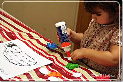 For each letter I’ve created a handwriting/poem sheet. We read the poem together, highlight the letter Ii’s in the poem, and then finger-trace how to make the letters. Then we trace the letters with either a crayon or chunky pencil.