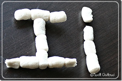 We used Magic Nuudles to make our letters and to try to build an igloo. These are biodegradable building blocks that stick together when just a little water is added. My kids would wipe the nuudle across a wet sponge and then stick it to another nuudle to make their creations. You could try to do something similar with mini-marshmallows too.