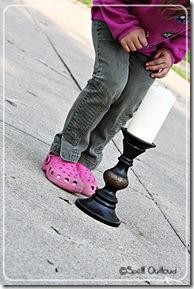 I set up a little jumping path on our driveway. I wrote capital and lower case letter Jj’s on the ground. Then added the candle stick. The girls had to jump on all the letter Jj’s and then jump over the candle stick. They had so much fun doing this!