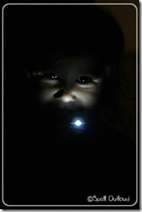 They shone their flashlights around the room until they found a letter. When they found the letter they had to make the letter sound in order to take the card off the wall. They also discovered they could make shadows and had fun coming up with various shadow creations.