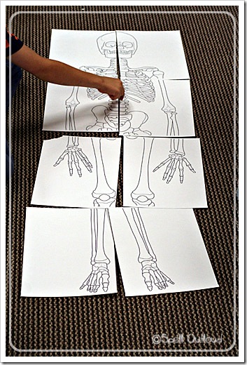 I found this print-out of a toddler skeleton. It is the size of an average toddler so I thought it would be fun to put together. I helped the girls and while we were guessing where the pieces went, we talked about the different bones. We had fun seeing if it was taller or shorter than each of the girls.